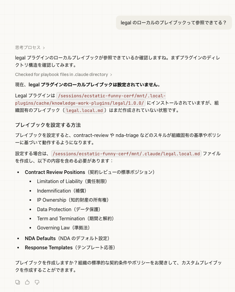 Claude Cowork の法務プラグインを試した